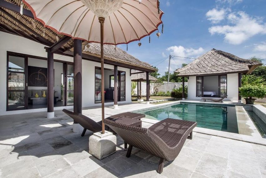 2 Chambres 2 salles de bains, salon séjour cuisine ouvrant sur la terrasse et sa belle piscine.